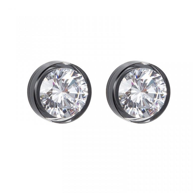 Серьги Brilliant Star - Ag 925/Rh, бесцветный кубический циркон (фианит), черный кристалл - Preciosa, Чехия