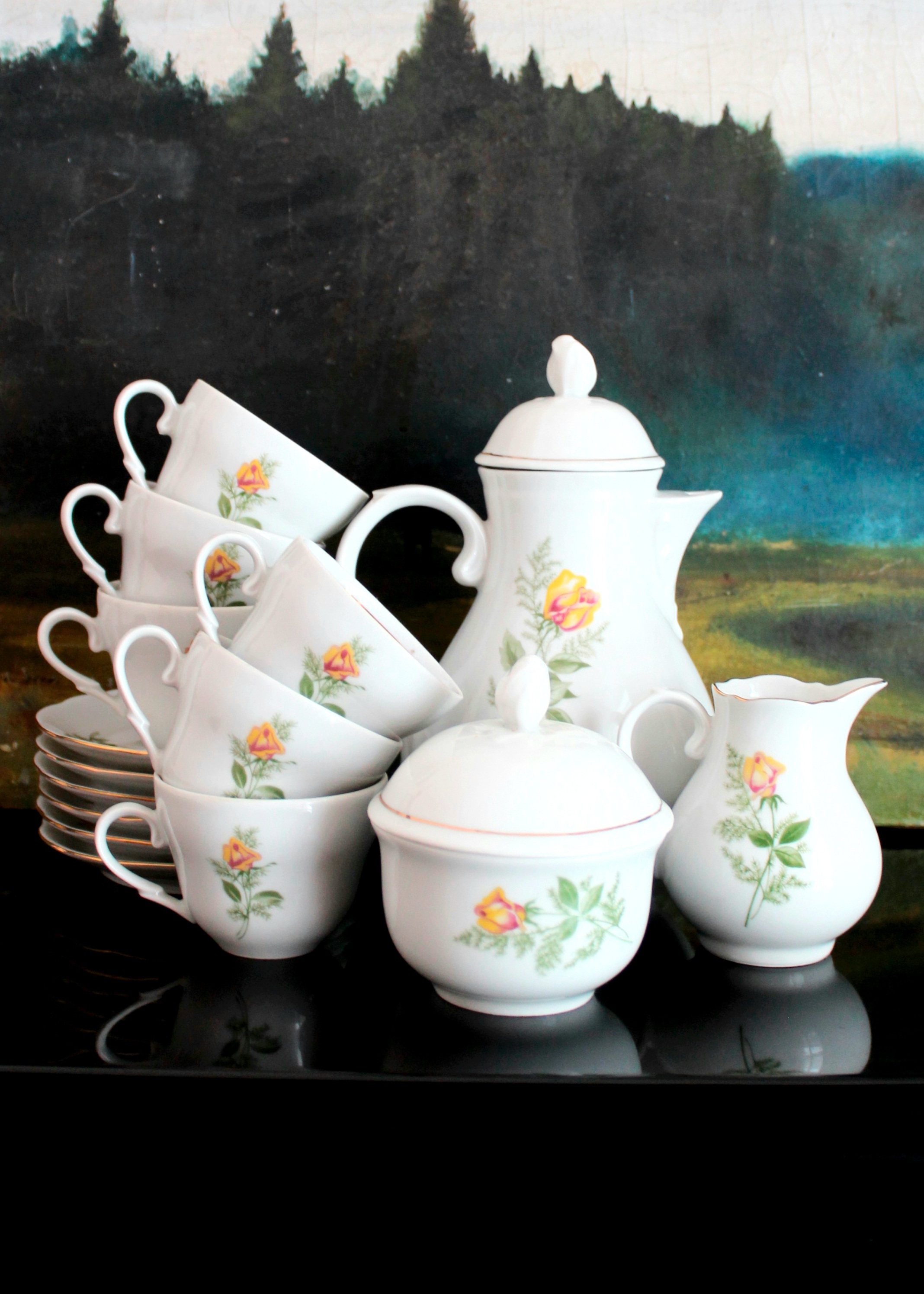 Сервиз кофейный с чайной розой на 6 персон KAHLA / ГДР