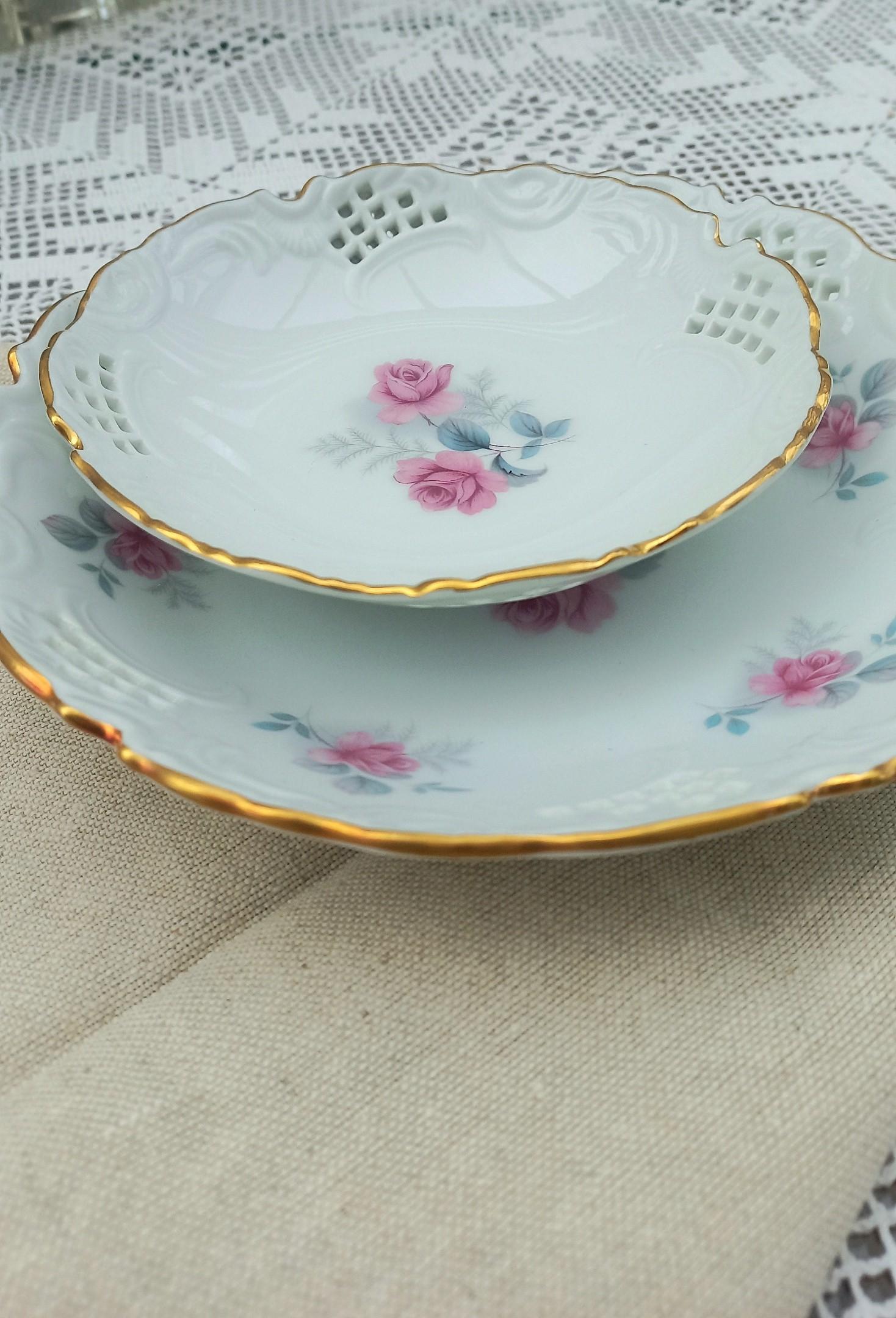 Германия Прорезной фарфор Клеймо Диаметр: 19,5 см Глубина: 4 см Диаметр: 14,5 см Глубина: 3,5 см Идеальное состояние